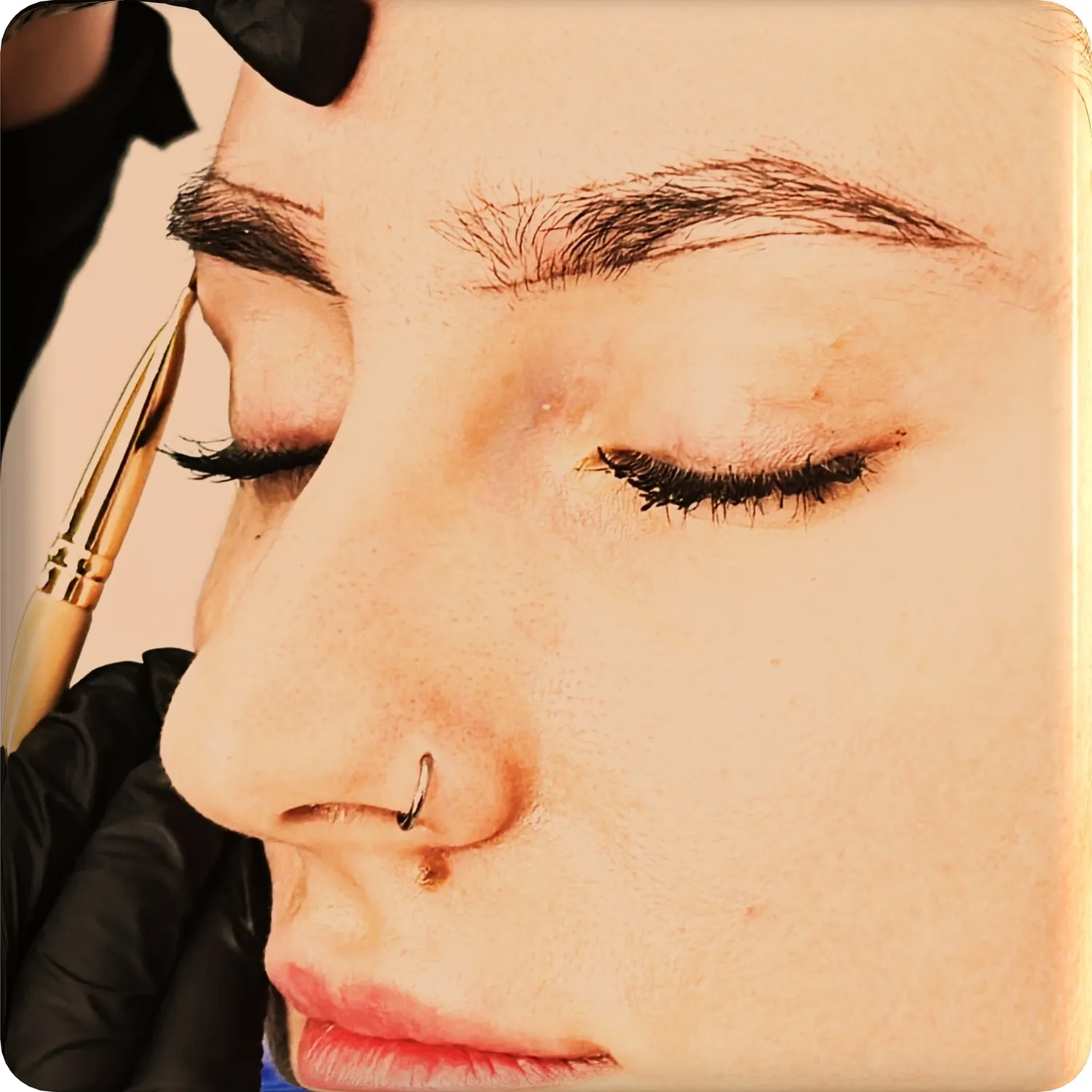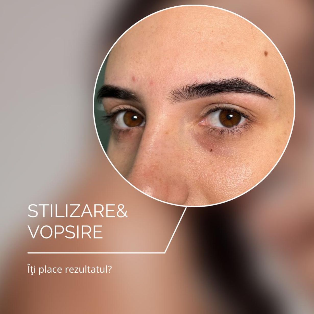 Vopsirea sprâncenelor completează stilizarea, aducând un plus de definire și culoare.